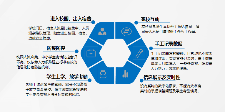 學(xué)生安全進(jìn)入校園,信息實(shí)時(shí)推送至家長(zhǎng)手機(jī);中午放學(xué)可在食堂刷臉消費(fèi)用餐,進(jìn)出宿舍通過(guò)刷臉識(shí)別獲取權(quán)限開(kāi)閘,信息會(huì)實(shí)時(shí)推送給家長(zhǎng),實(shí)時(shí)知道學(xué)生是否在寢,宿管員接收統(tǒng)計(jì)信息,學(xué)生可以在留言班牌刷臉識(shí)別查看家長(zhǎng)發(fā)的留言信息;晚上放學(xué)離開(kāi)學(xué)校,家長(zhǎng)接收孩子離開(kāi)學(xué)校信息,讓家長(zhǎng)參與學(xué)生管理,后臺(tái)數(shù)據(jù)統(tǒng)計(jì)分析,讓管理者全面掌握學(xué)生行為狀態(tài),實(shí)現(xiàn)學(xué)校科學(xué)管理。